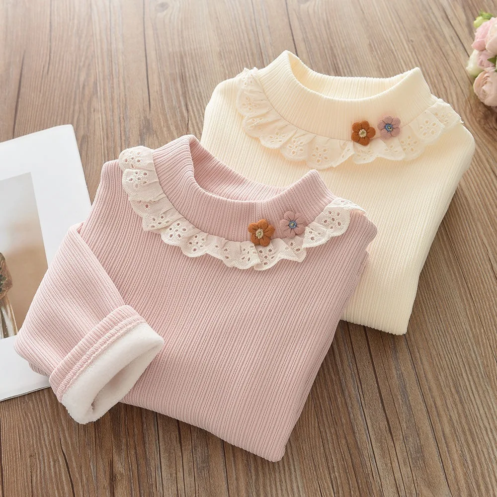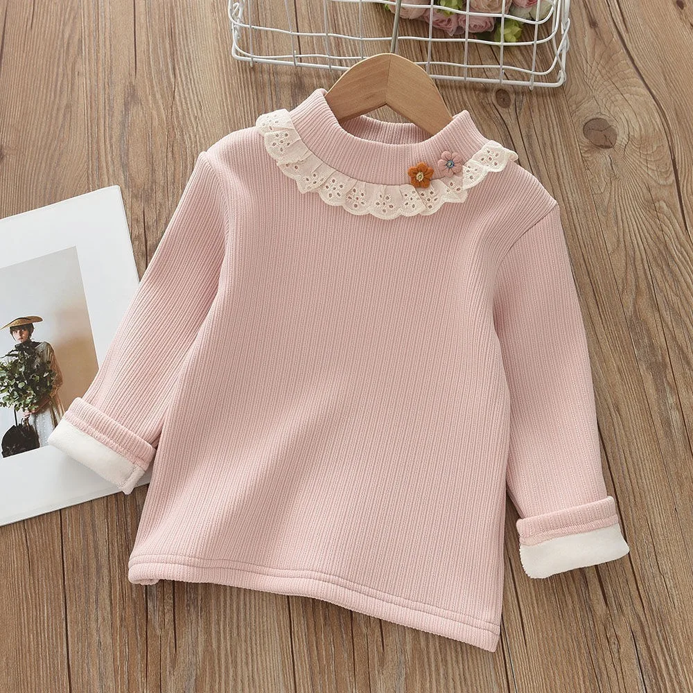 Children's T-Shirts: Flower Decoration Velvet warm top
