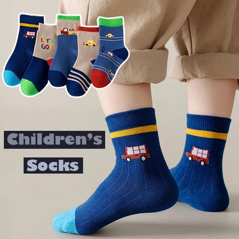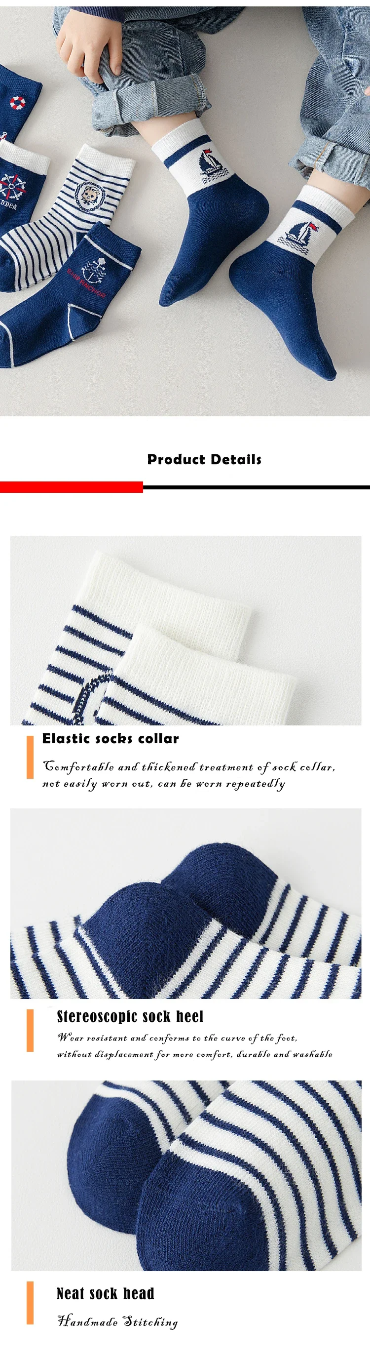 Color: SKY BLUE, Size: 2-3T - 1-14T Kids' Socks Spring Autumn Cotton Socks 5 Pairs/lot Soft Cotton F640-12000044494834027